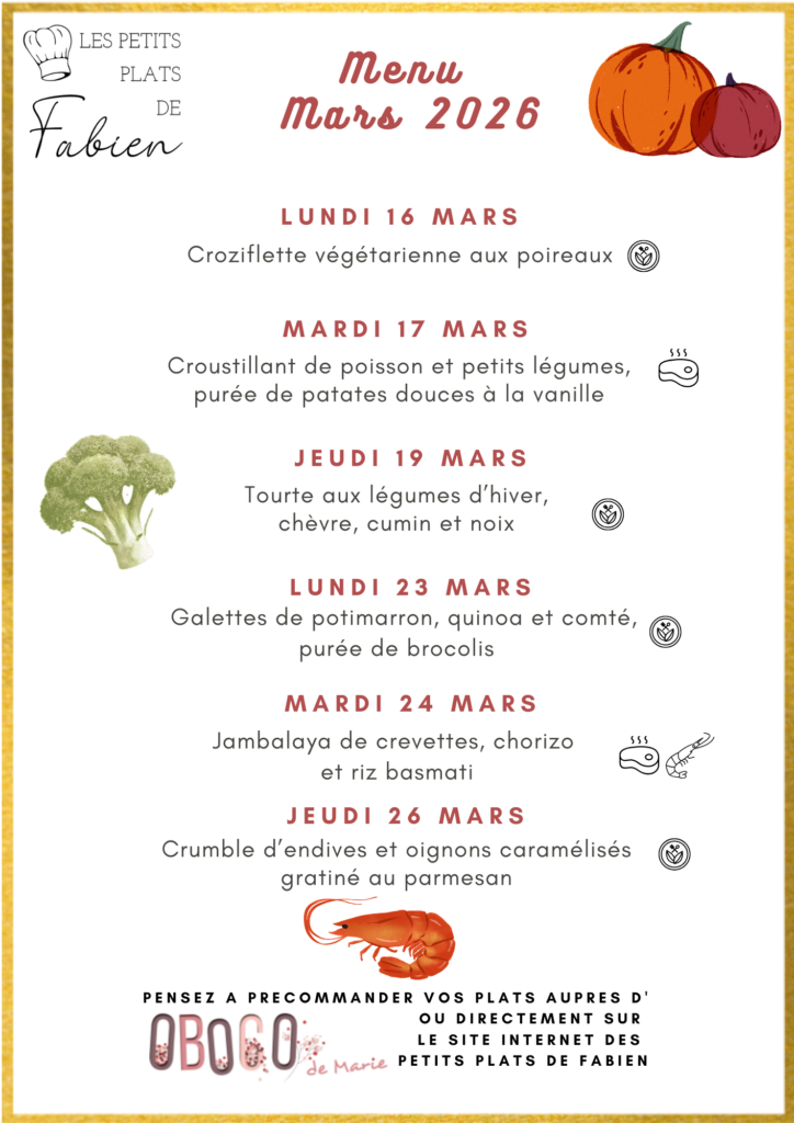 🥘 Les petits plats de Fabien ne me fournissent pas pendant les 2 prochaines semaines. Mais j’aurai des bouchées de légumes et des raviolis frais pour dépanner